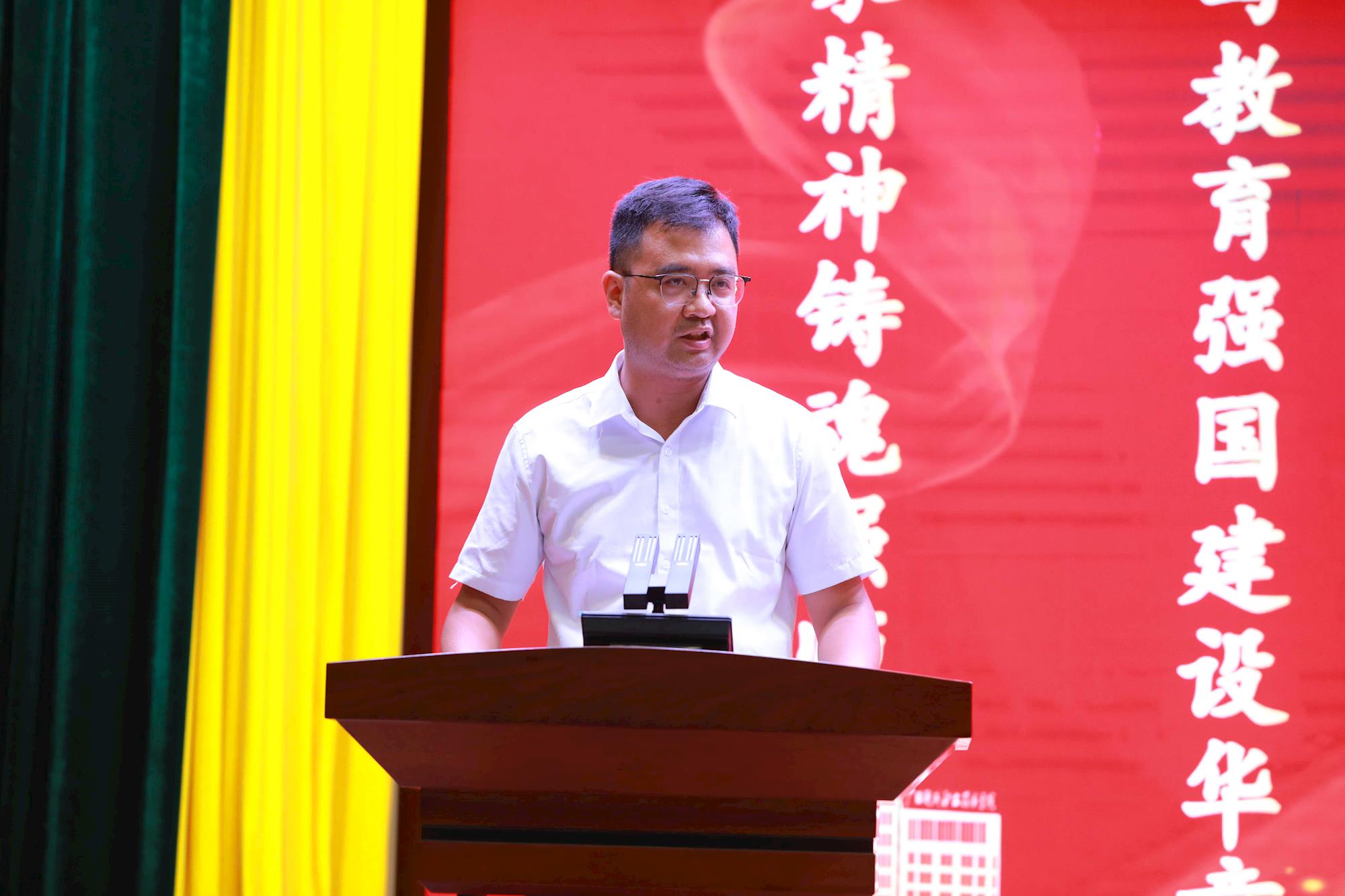 9月9日下午,广西现代职业技术学院在综合楼二楼东面报告厅举行“以教育家精神铸魂强师 谱写教育强国建设华章”教师节表彰大会,热烈庆祝第41个教师节。河池市政协副主席、学校党委书记韦伟松,党委副书记、校长黄绍光等学校领导出席大会,建校30年突出贡献退休人员代表及追授建校30年突出贡献人员家属代表、学校其他教职工等 500 余人参会。党委副书记、副校长杨奎主持会议。
