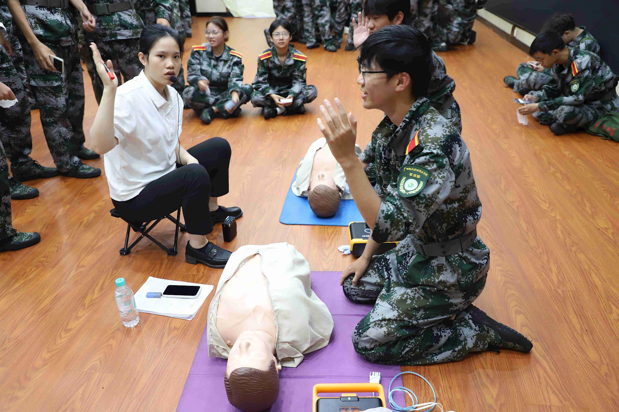 在广西红十字会救护训练中心专业团队的精心指导下,通过“理论讲解+实操实训+严格考核”的模式,新生们系统学习了急救基础理论、心肺复苏(CPR)、自动体外除颤器(AED)使用、海姆立克急救法、创伤救护等实用技能。